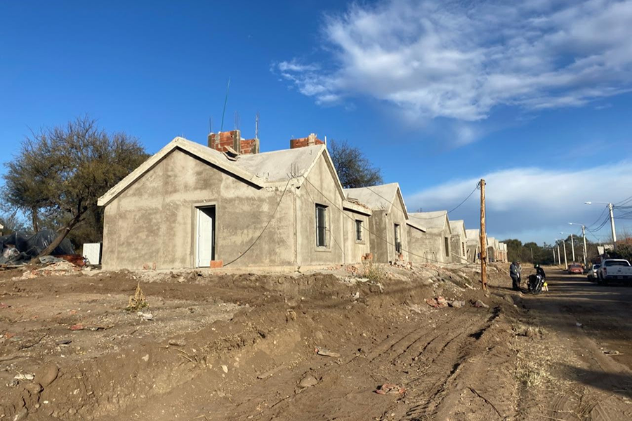 Son 20 unidades que se construyen enfrente del barrio 272 Viviendas. Ya comenzaron con revoques gruesos en exteriores y revoques finos en interiores. En paralelo realizan accesos vehiculares.
